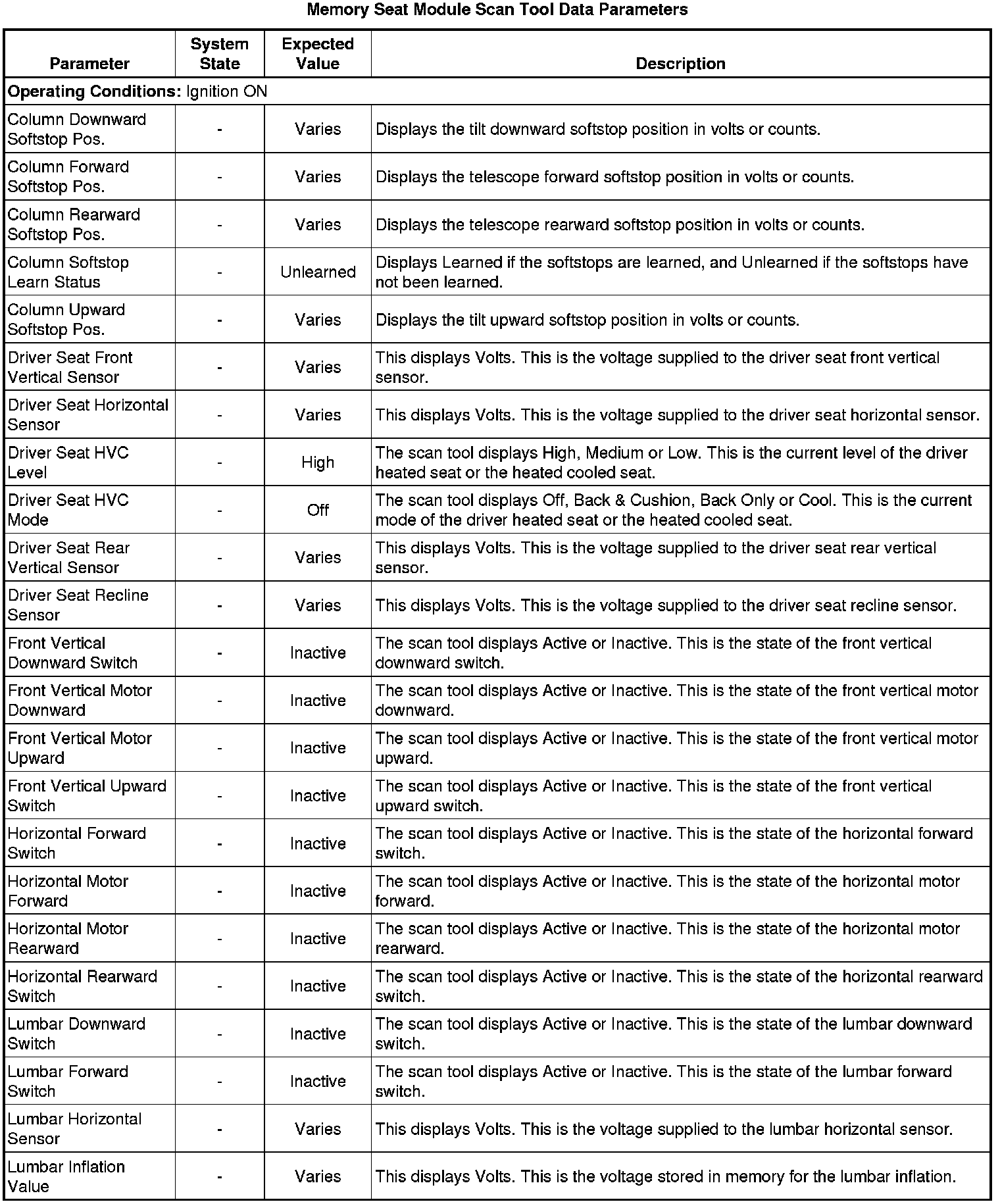 Driver Seat Adjuster Memory Module Scan Tool Information