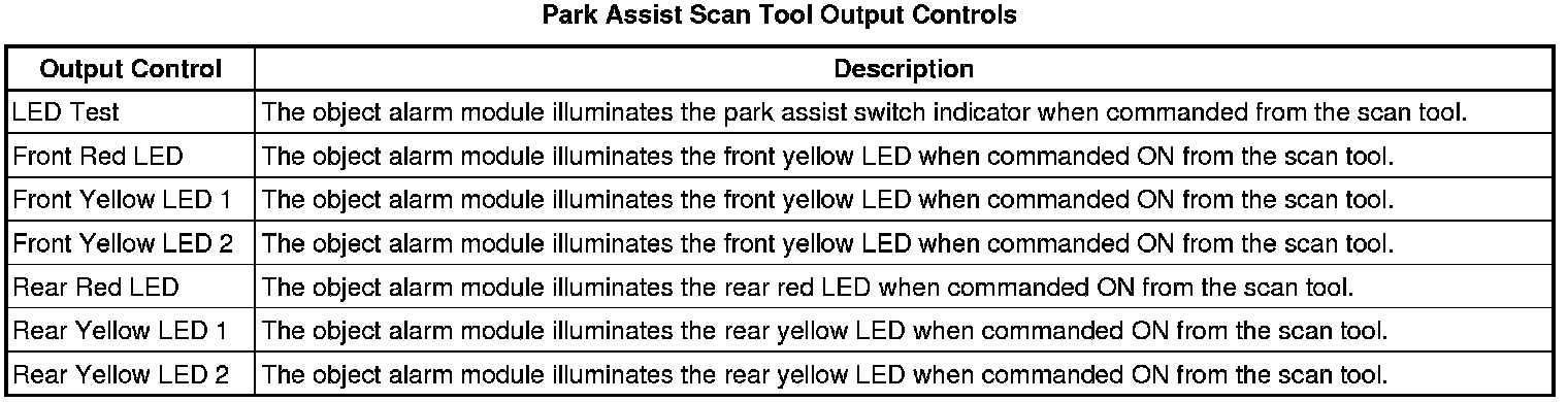 The scan tool data list contains all the object detection system related parameters that are available on the scan tool. The parameters in the list are arranged in alphabetical order. The column, Data List, indicates the location of the parameter within the scan tool menu selections.