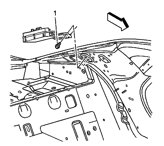 3. Remove the bolt (1) securing the antenna module to the vehicle.
