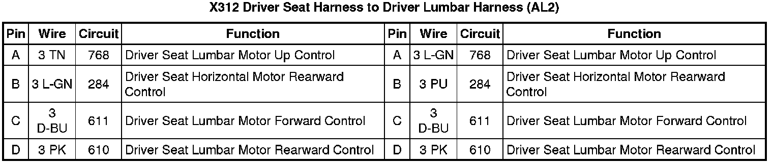 X312 Driver Seat Harness to Driver Lumbar Harness (AL2)
