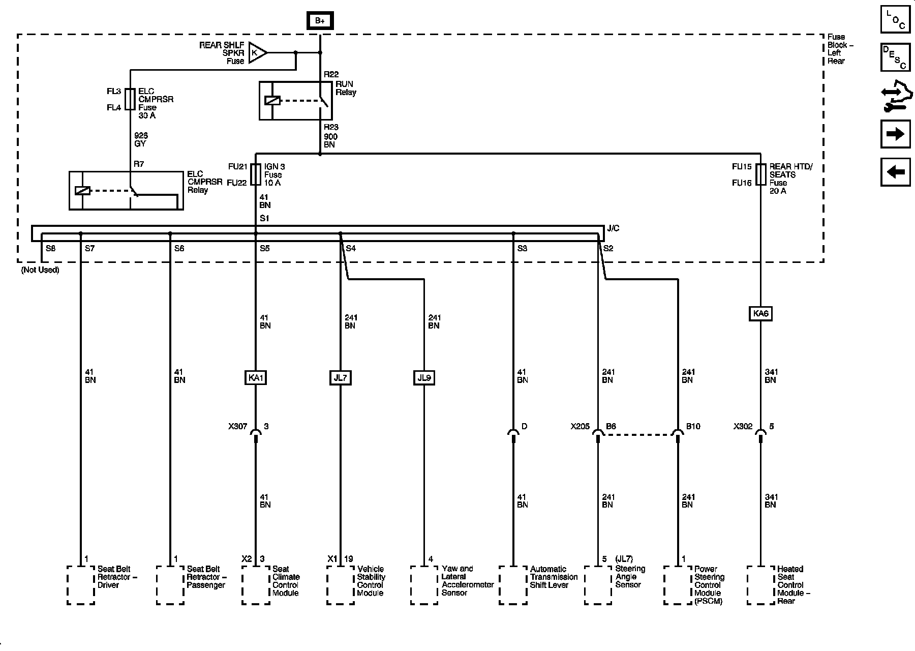 ELC CMPRSR, IGN 3, and REAR HTD/SEATS Fuses