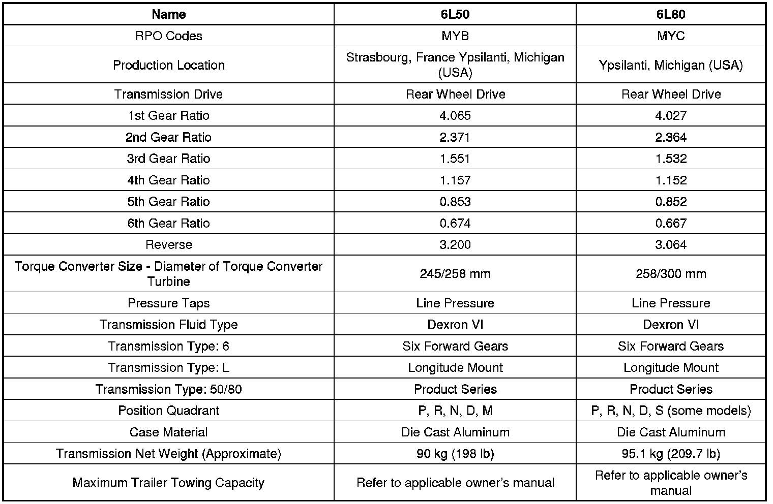 Transmission General Specifications