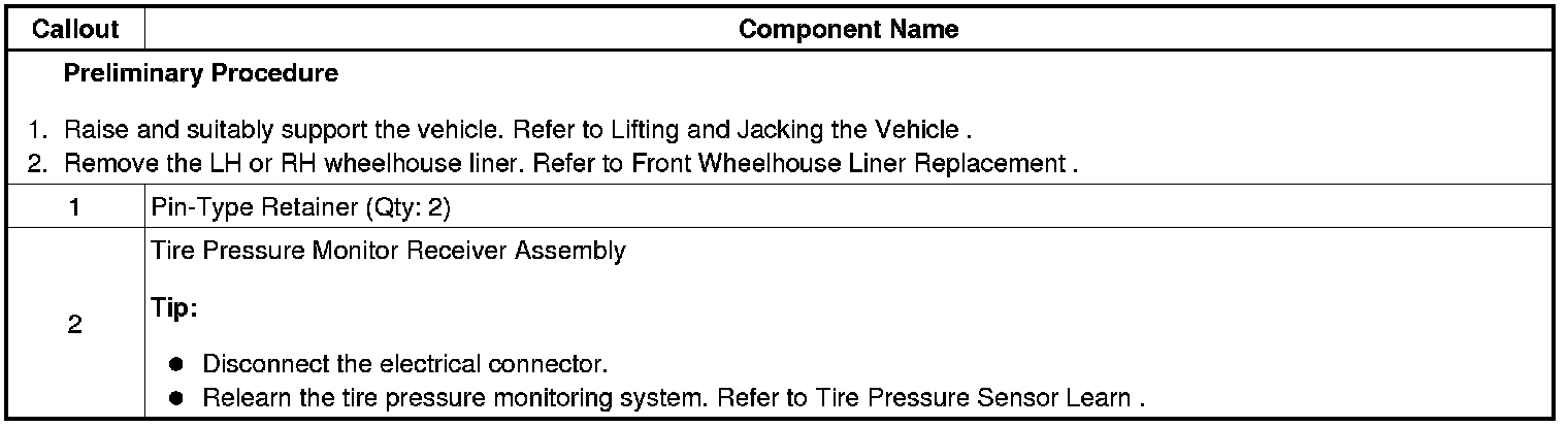 Tire Pressure Indicator Receiver Replacement (RPO UH3)