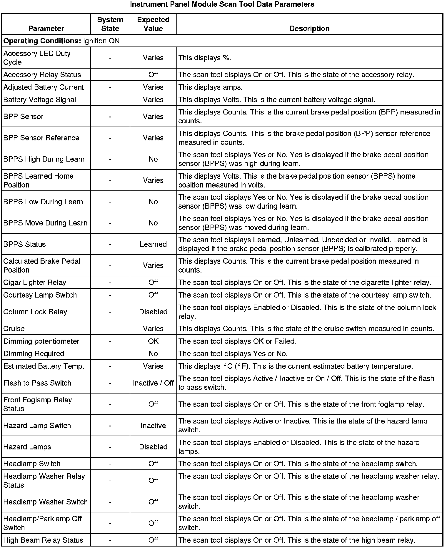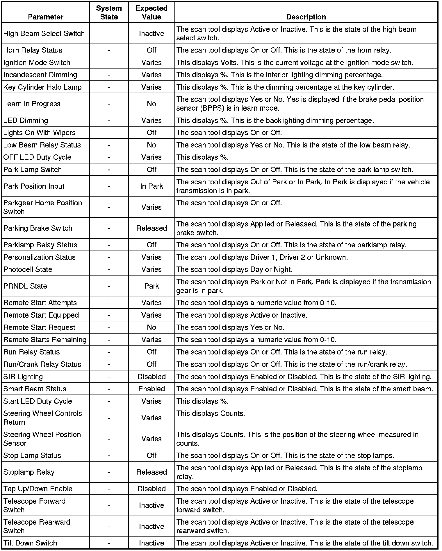 Body Control Module Scan Tool Information