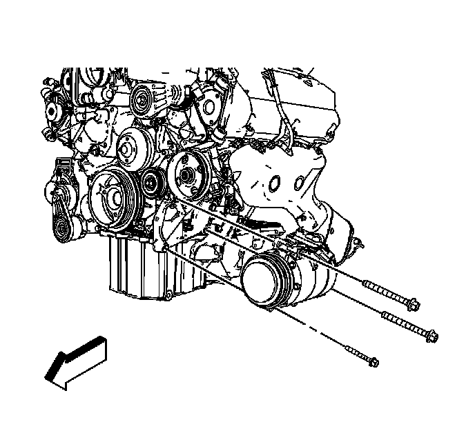 3. Remove the drive belt tensioner. Refer to Drive Belt Tensioner Replacement - Air Conditioning, Power Steering, and Water Pump (Drive Belt Tensioner Replacement - Air Conditioning, Power Steering, and Water Pump) .
