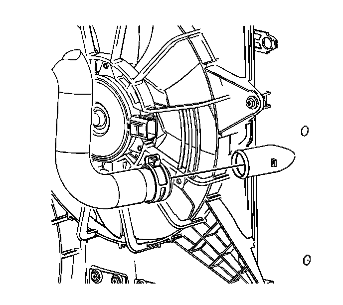 2. Using the J 38185 , disengage the tension on the hose clamp and remove the radiator inlet hose from the throttle body housing.