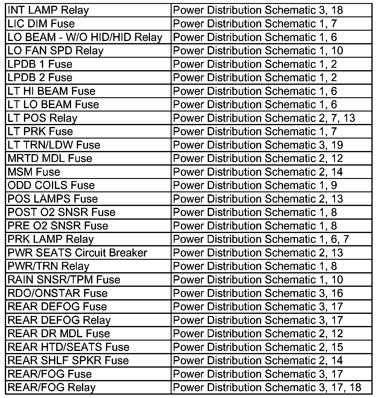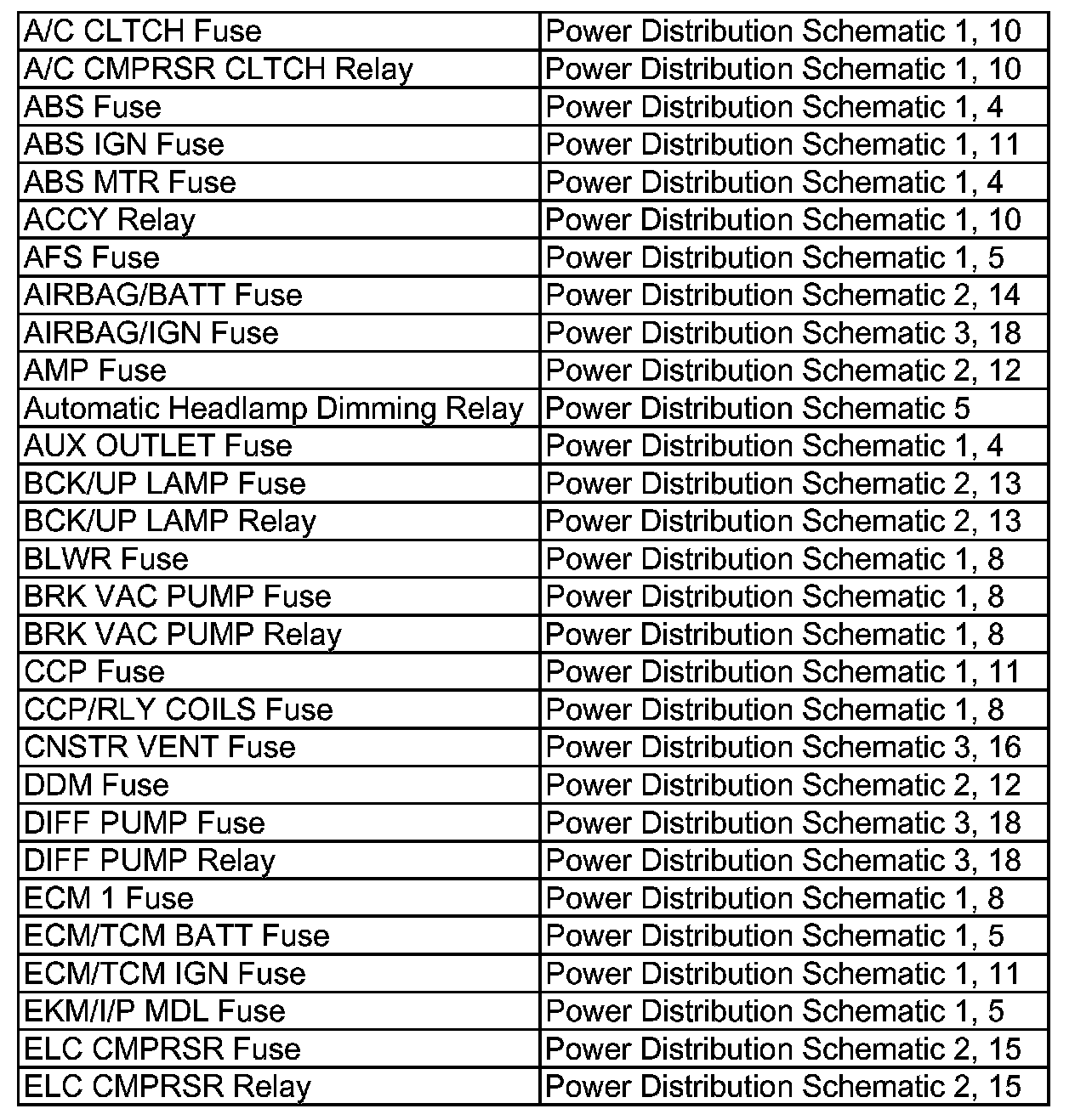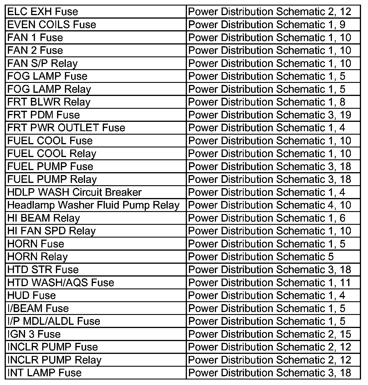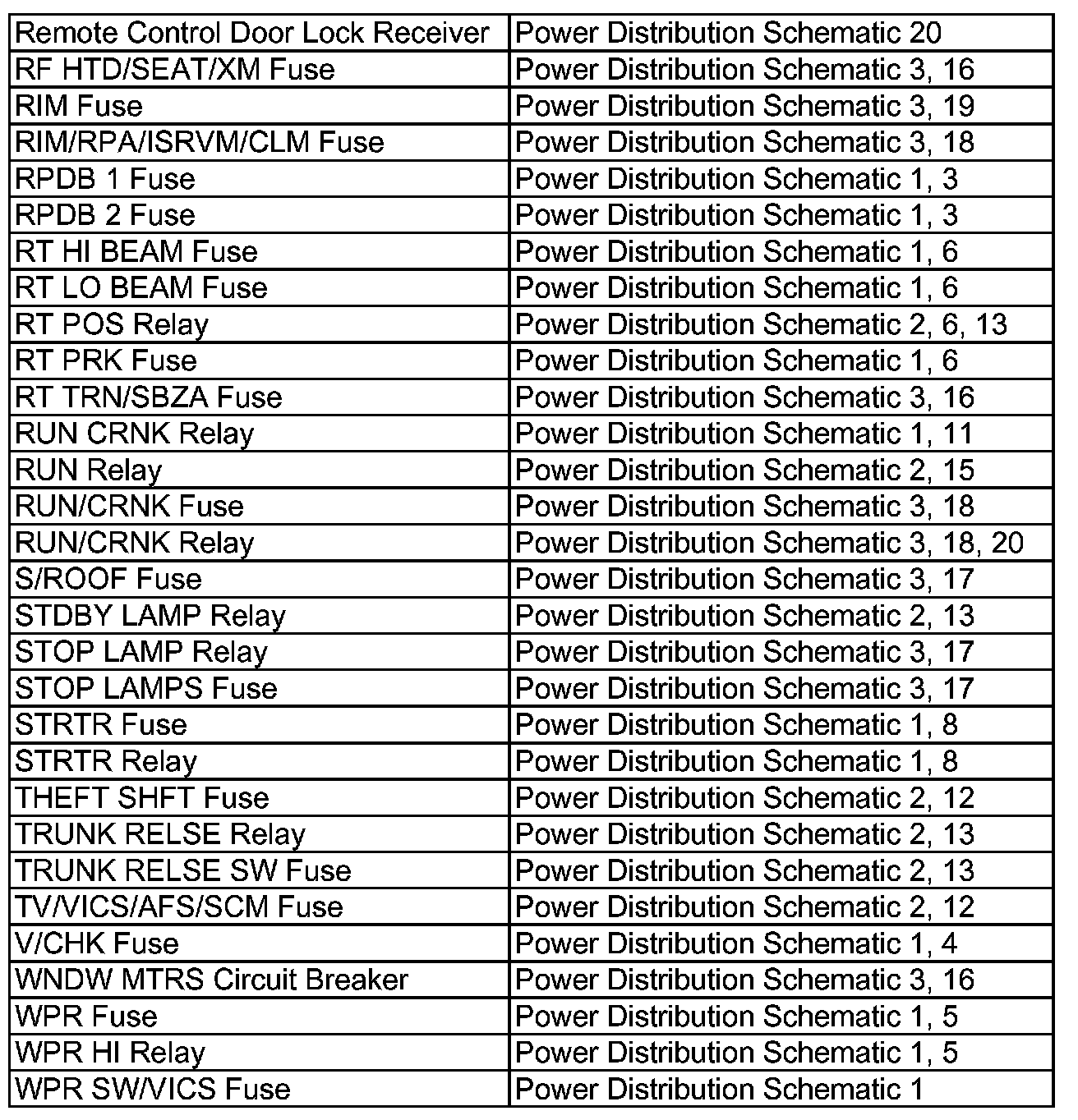 Power Distribution Diagram Index