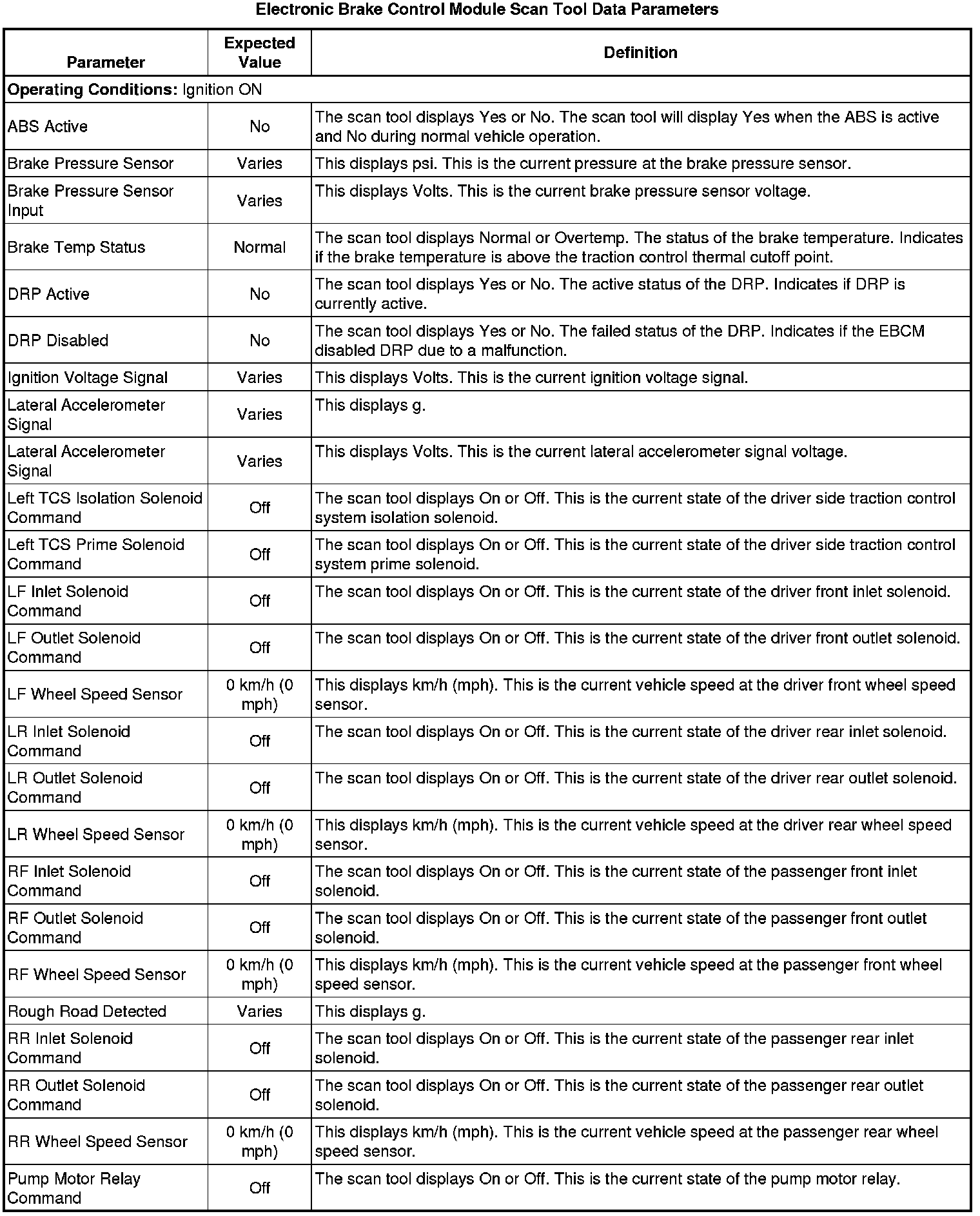 Electronic Brake Control Module Scan Tool Information