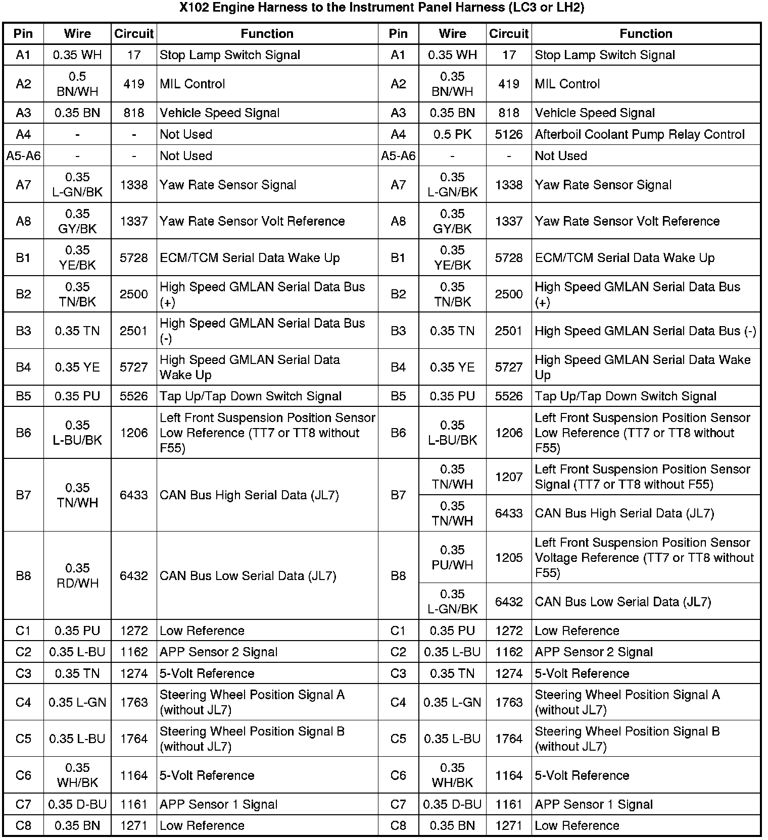 X102 Engine Harness to the Instrument Panel Harness (LC3 or LH2)