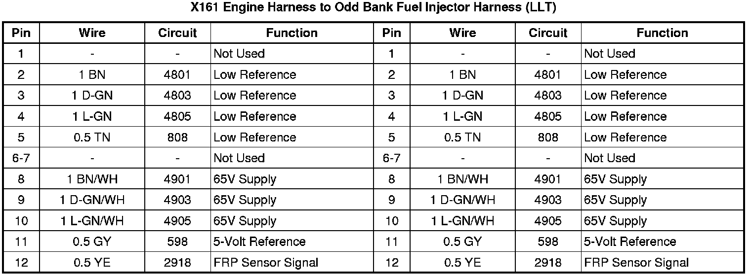 X161 Engine Harness to Odd Bank Fuel Injector Harness (LLT - Gas, 6 Cyl, 3.6L, Sidi, V6, Alum)