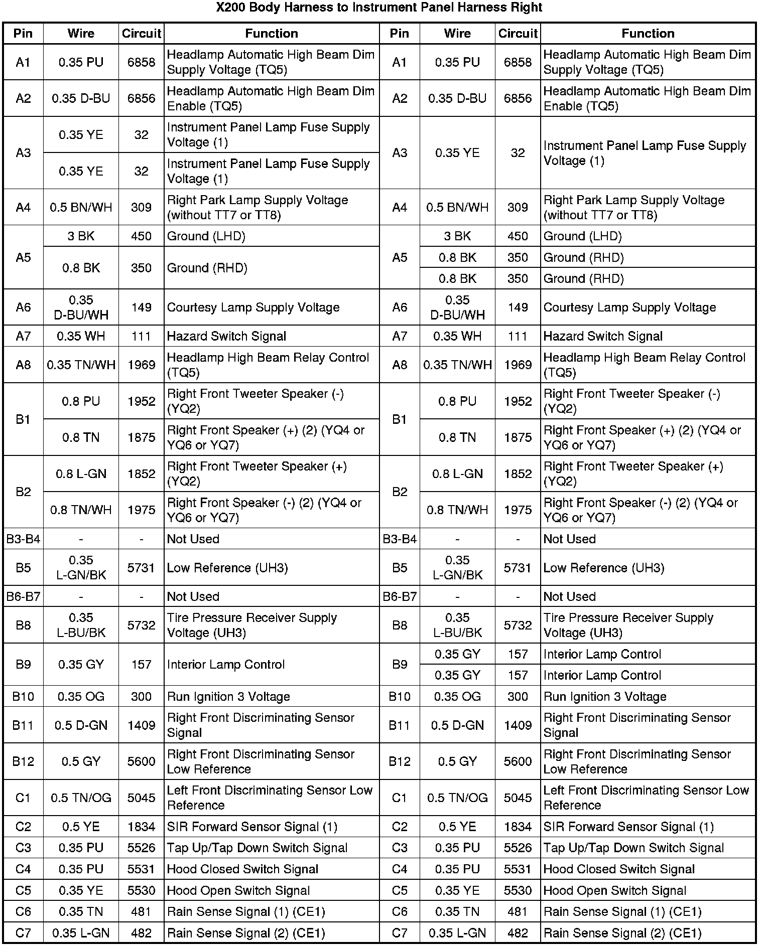 X200 Body Harness to Instrument Panel Harness Right
