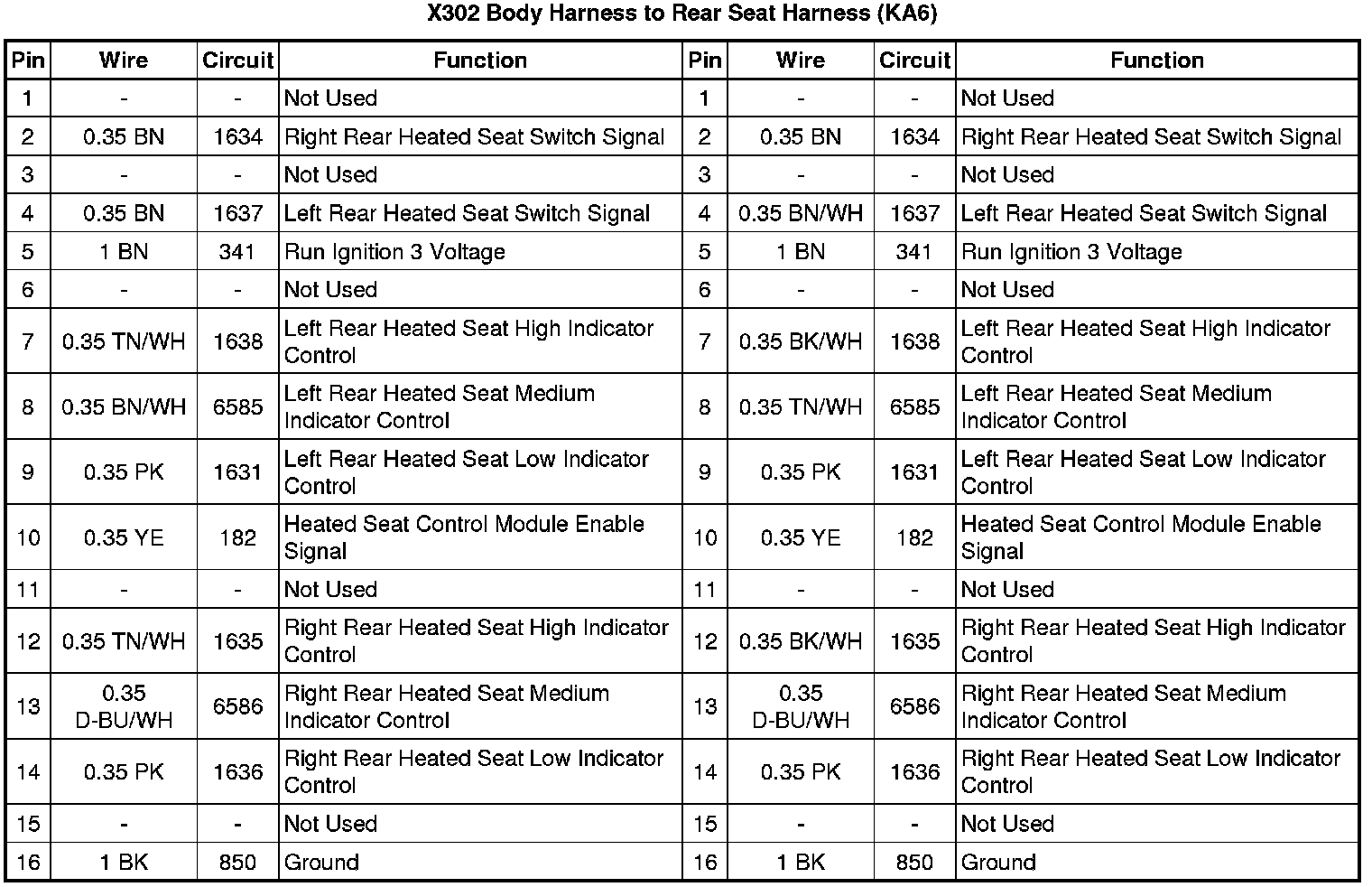 X302 Body Harness to Rear Seat Harness (KA6)