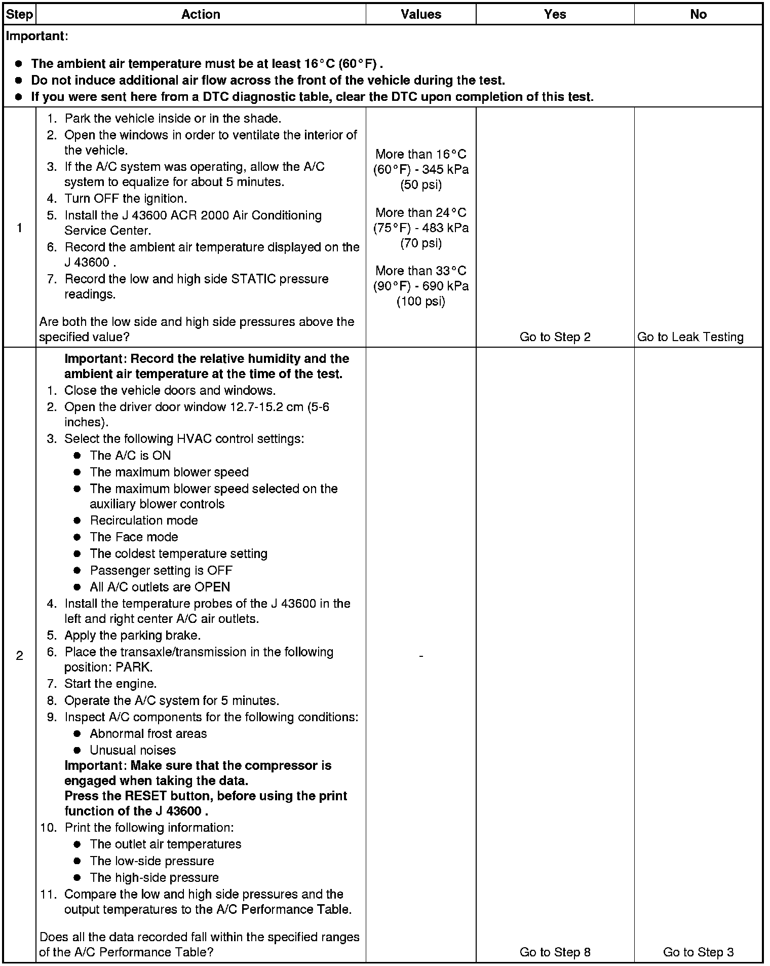 1. This step determines if the A/C system has at least the minimum refrigerant charge required to operate the system without damage.