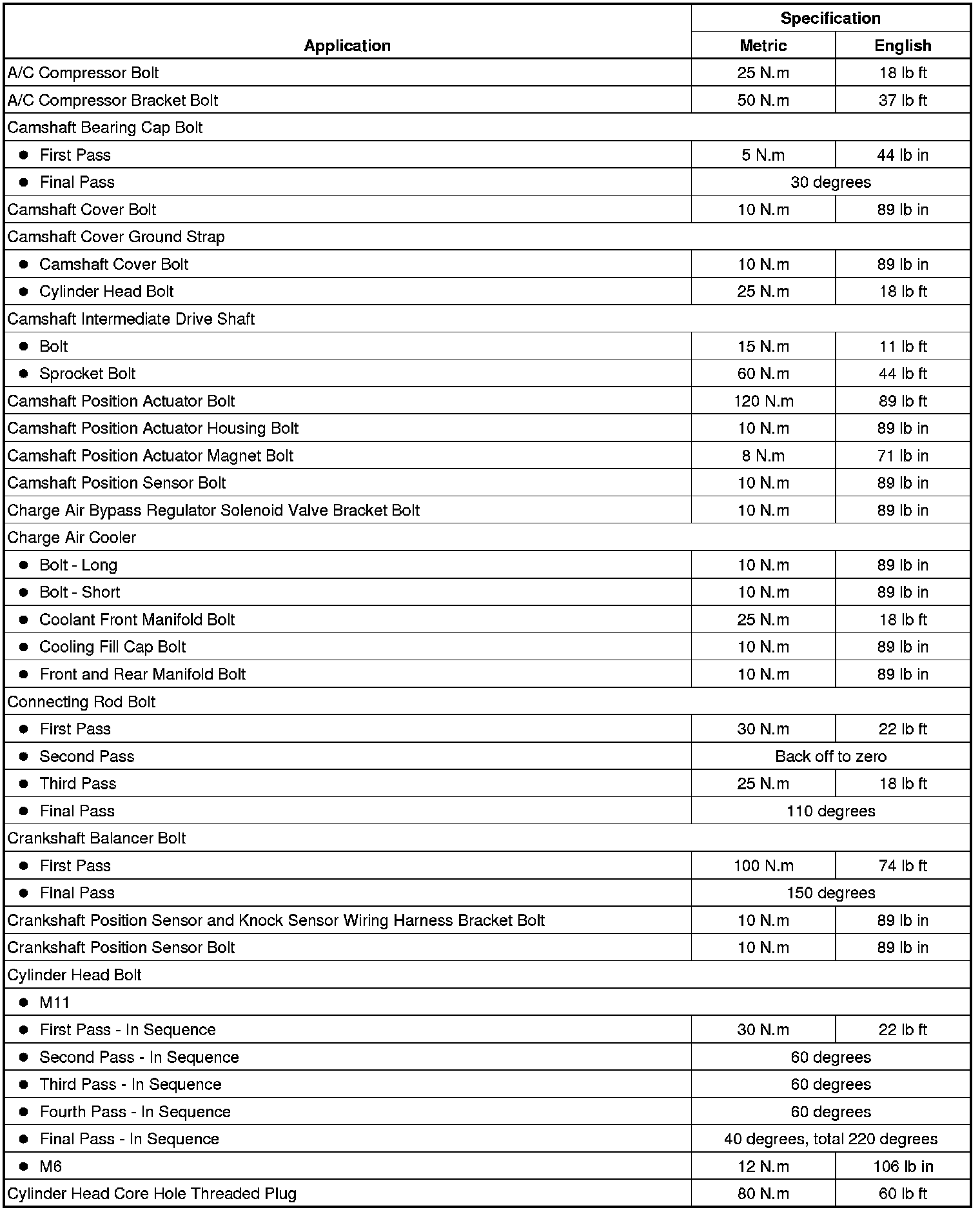 Fastener Tightening Specifications