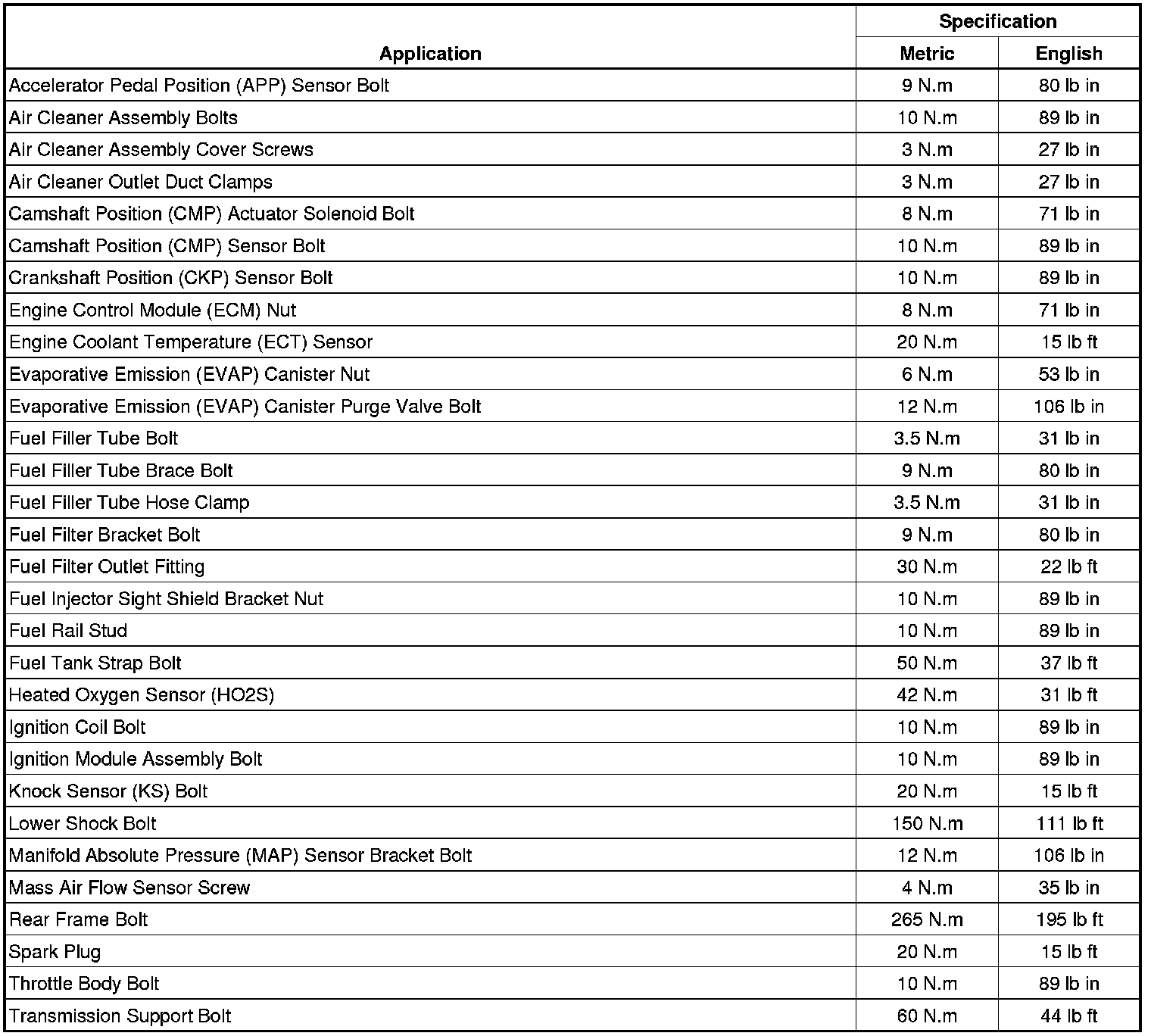 Fastener Tightening Specifications