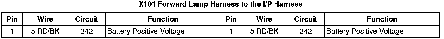 X101 Forward Lamp Harness to the I/P Harness