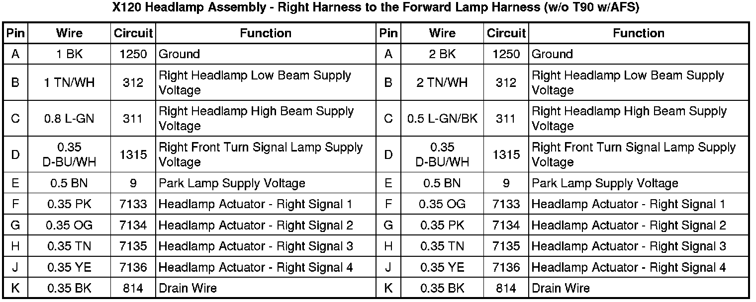 X120 Headlamp Assembly - Right Harness to the Forward Lamp Harness (w/o T90 w/AFS)