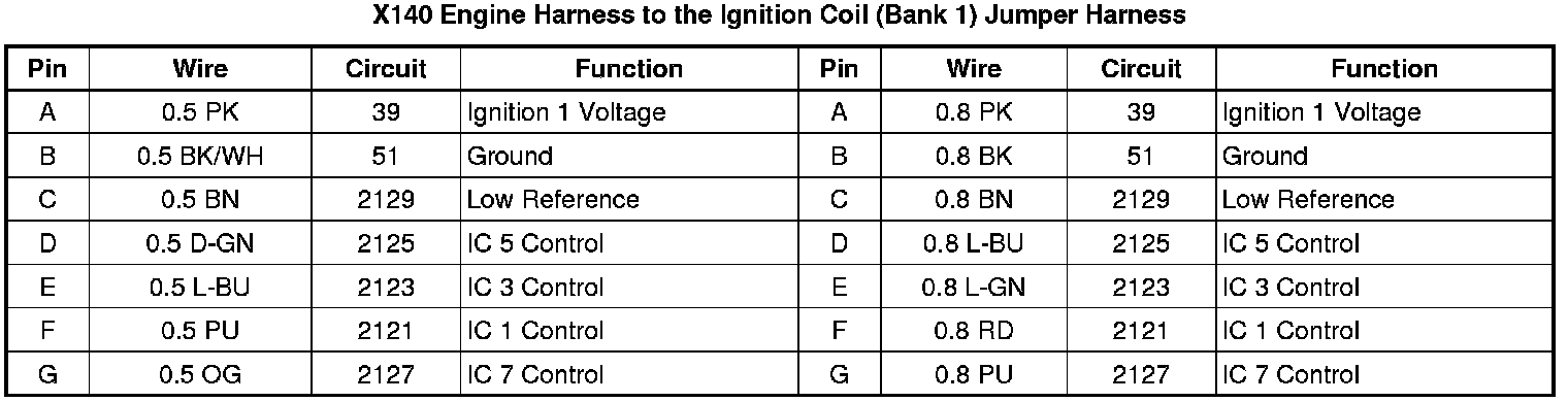X140 Engine Harness to the Ignition Coil (Bank 1) Jumper Harness