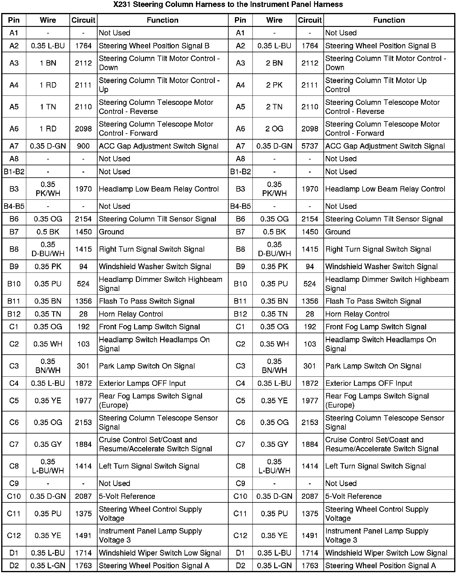 X231 Steering Column Harness to the Instrument Panel Harness