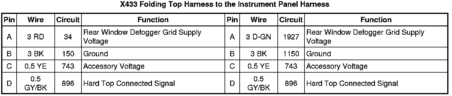 X433 Folding Top Harness to the Instrument Panel Harness