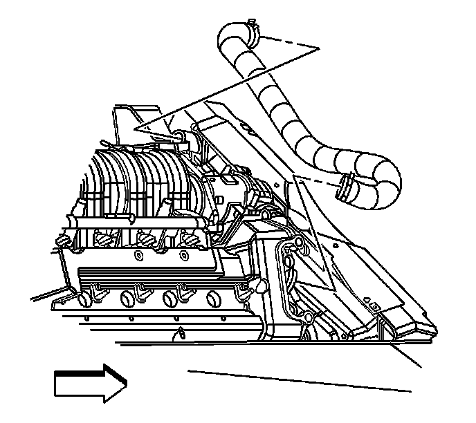 15. Engage tension on the radiator inlet hose clamp at the engine using J 38185 .