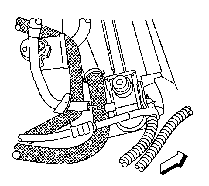 12. Disconnect the upper transmission oil cooler line from the radiator. Refer to Transmission Fluid Cooler Upper Pipe Assembly Replacement (Service and Repair) .