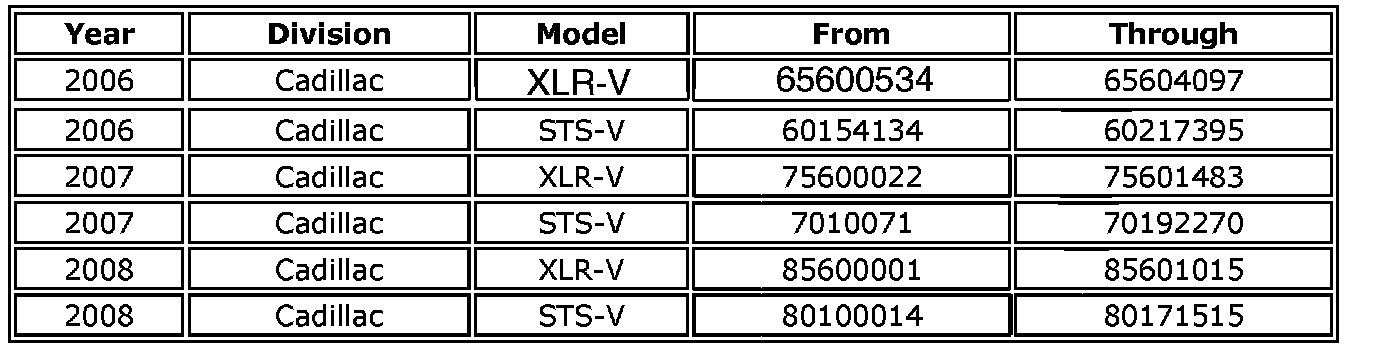 ^ 2006-07 Cadillac XLR-V, STS-V: Use data version 4.5 for 2008 as of 04/17/08 or later, available on TIS 2 Web; and on TIS DVD version 5.0/2008 or later, mailed to dealers beginning 5/07/08.