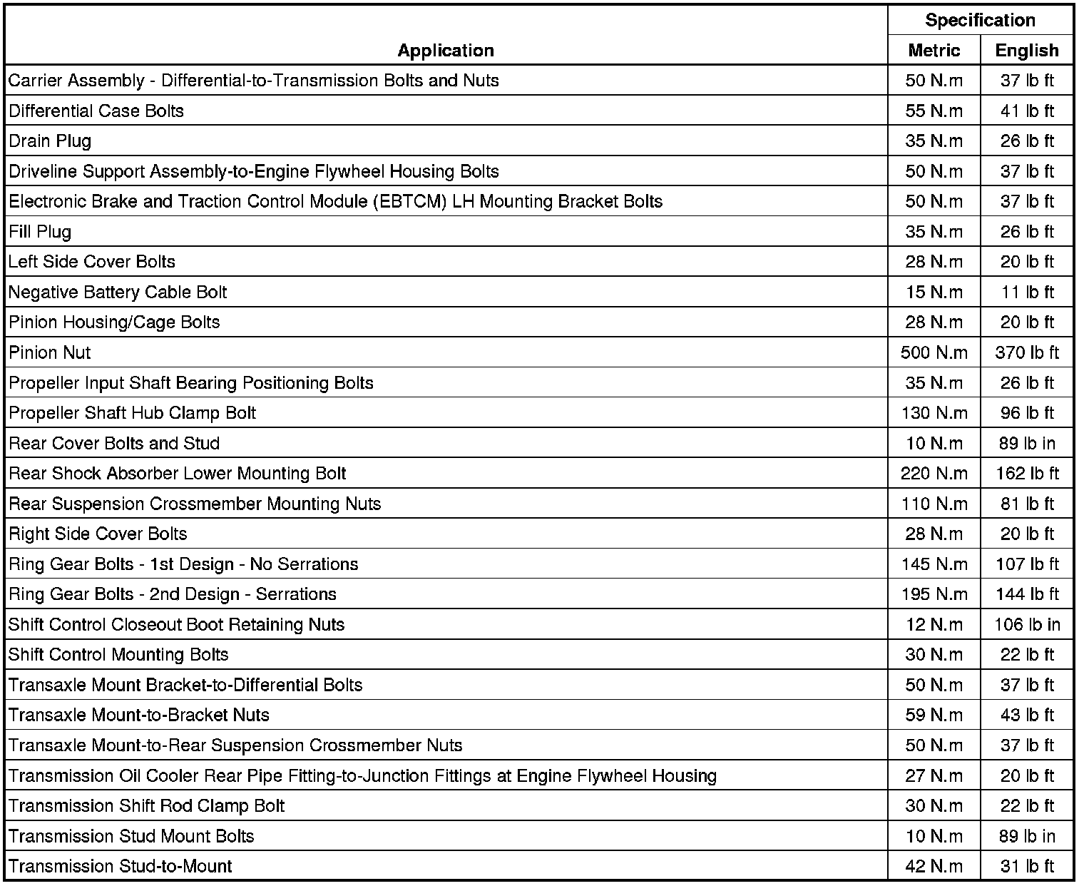 Fastener Tightening Specifications
