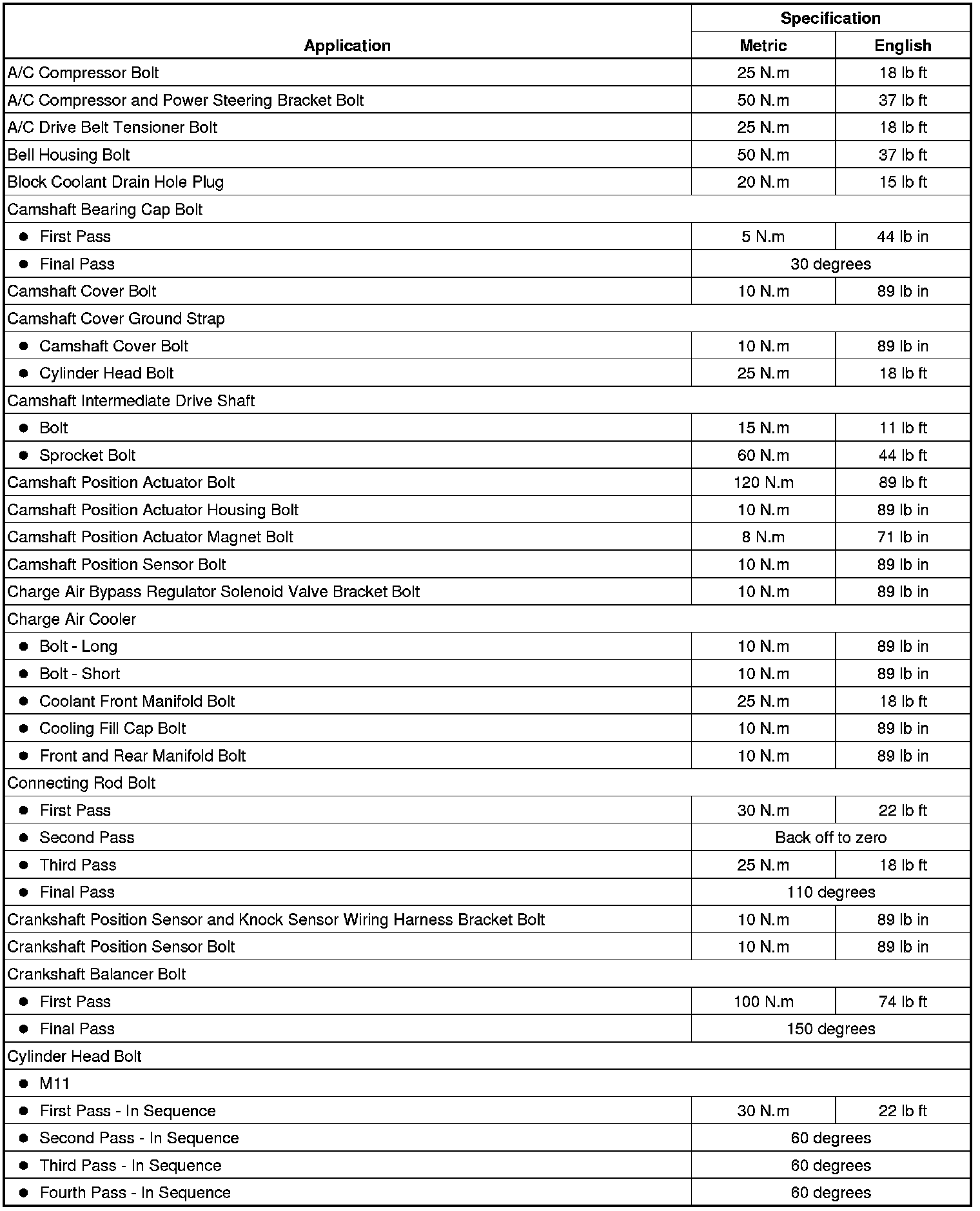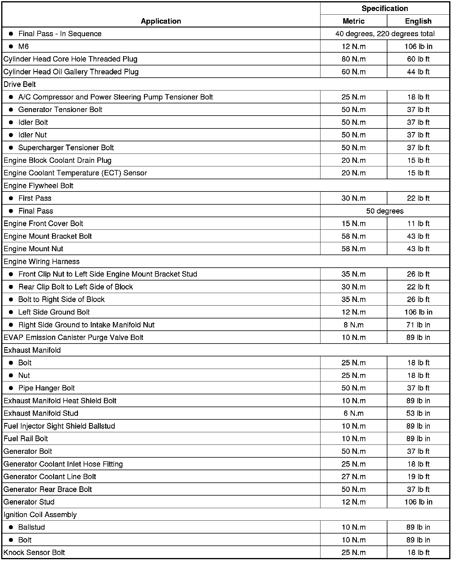 Fastener Tightening Specifications