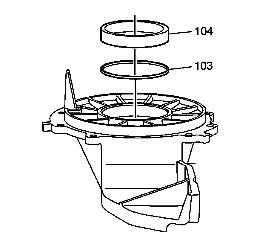 18. Remove the bearing cup (104) and shim (103). Mark or tag the shim for assembly.