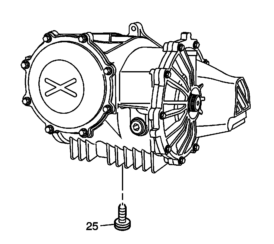 1. Remove the drain plug and washer (25) and allow the fluid to drain.