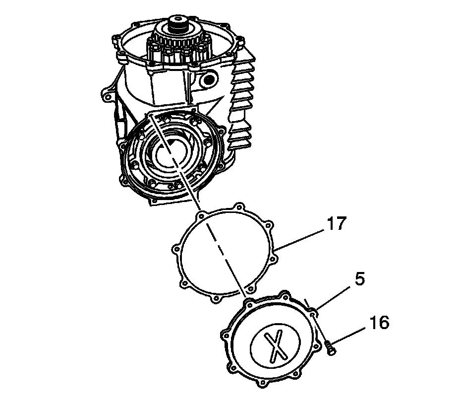 10. Remove the cover - rear (5), bolts (16), and gasket (17).