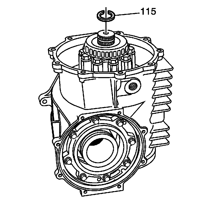 12. Install the J 42155 into the groove of the output shaft in order to remove the differential case assembly.