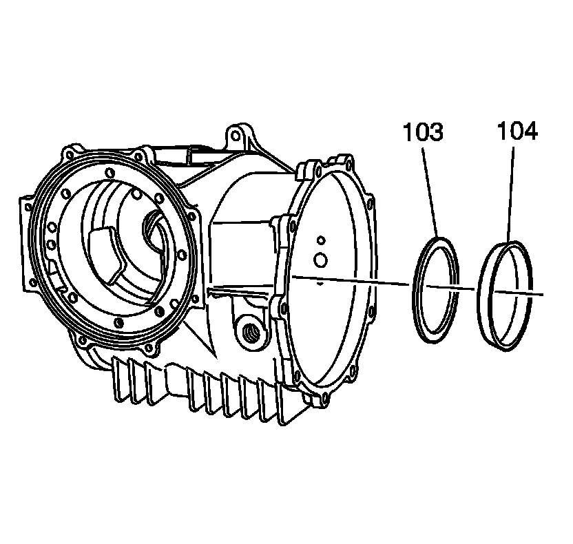 21. Remove the cup (104) and shim (103) from the differential housing. Mark or tag the shims for assembly.