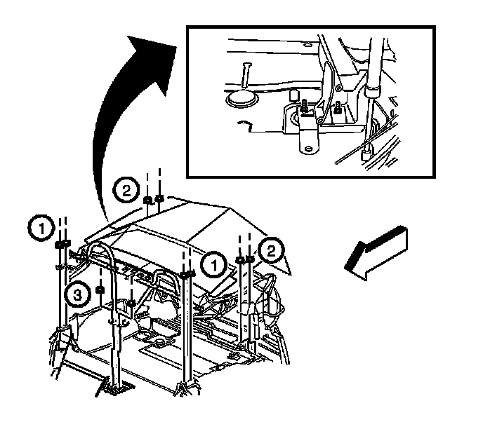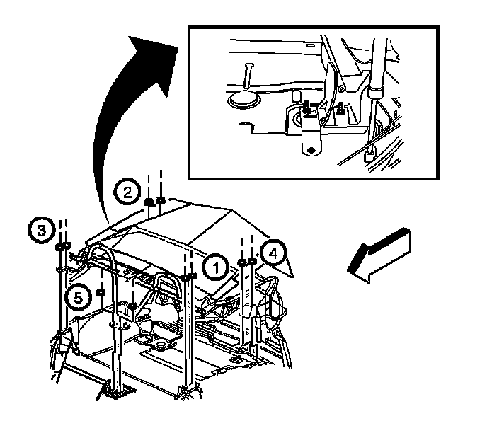 4. Install the nuts on the folding top module and hand tighten the nuts in the designated sequence.