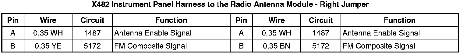 X482 Instrument Panel Harness to the Radio Antenna Module - Right Jumper