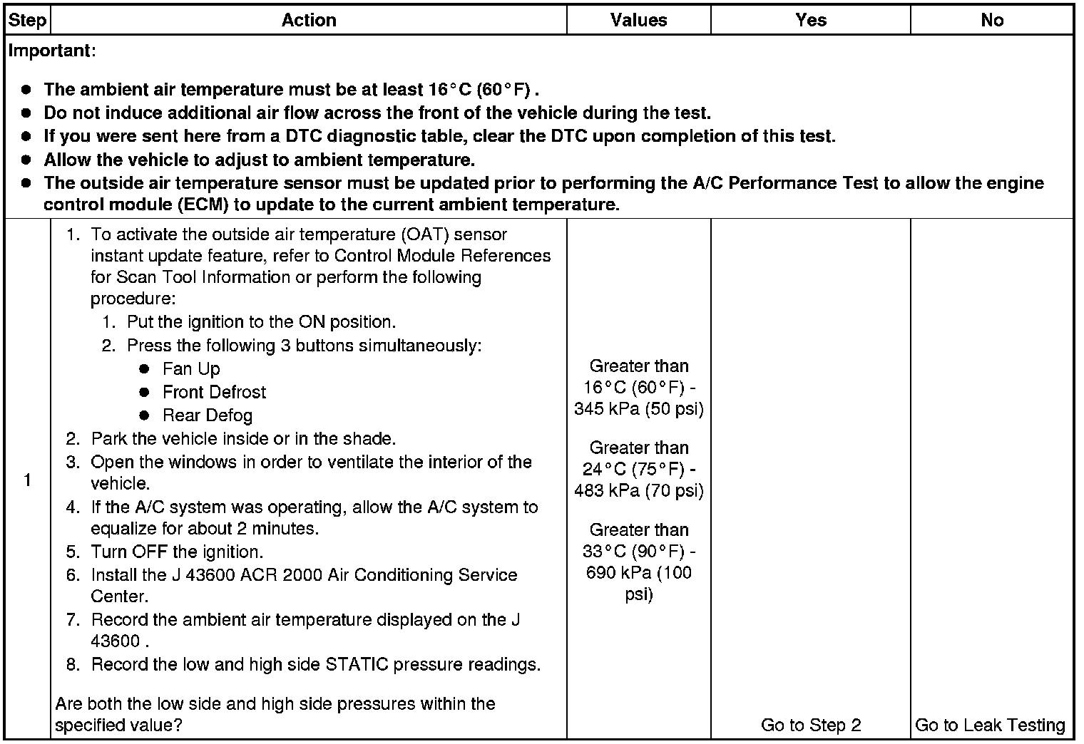 1. This step determines if the A/C system has at least the minimum refrigerant charge required to operate the system without damage.