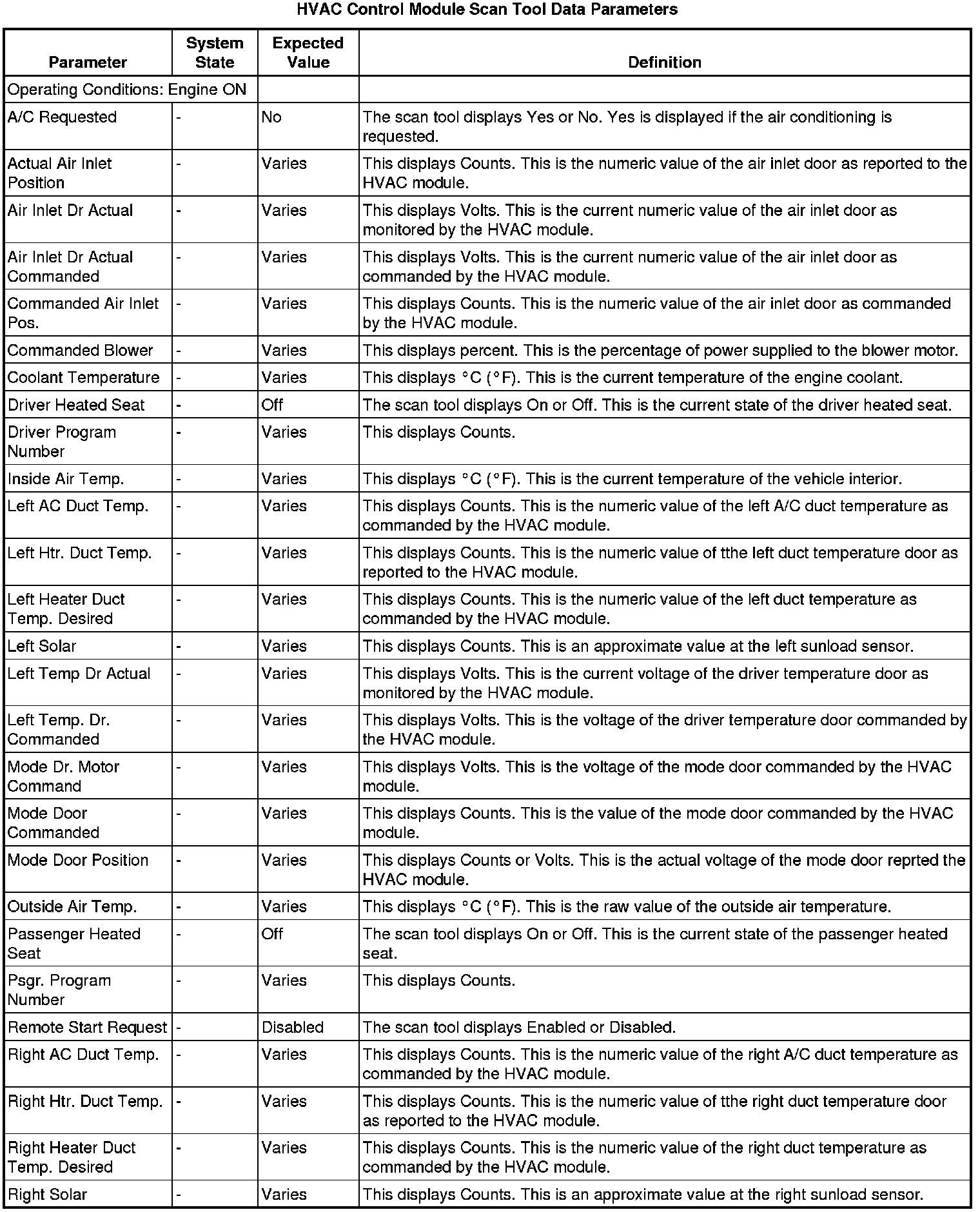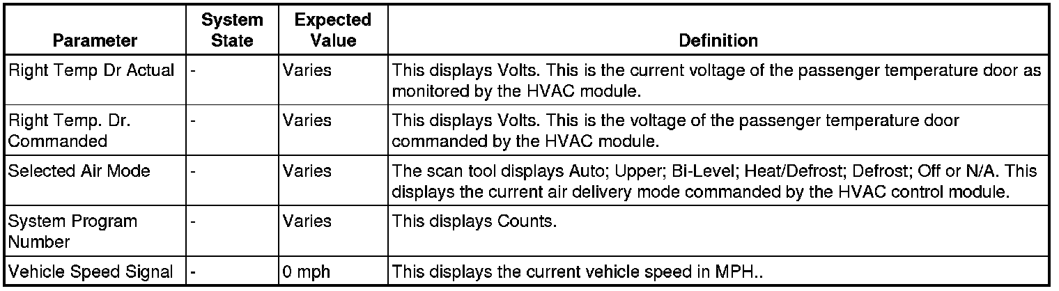 Heating, Ventilation and Air Conditioning Control Module Scan Tool Information