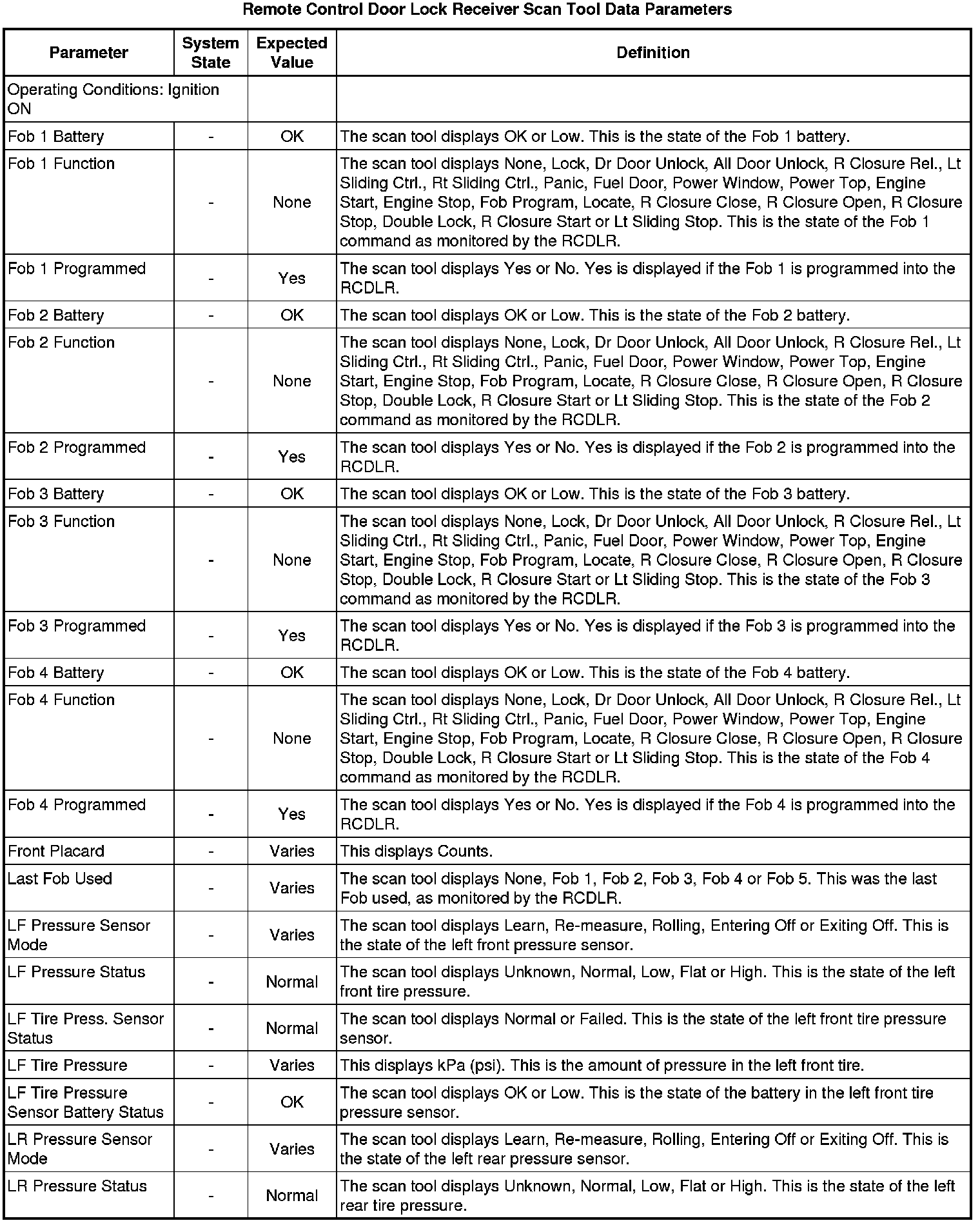 Door Lock Receiver Scan Tool Information