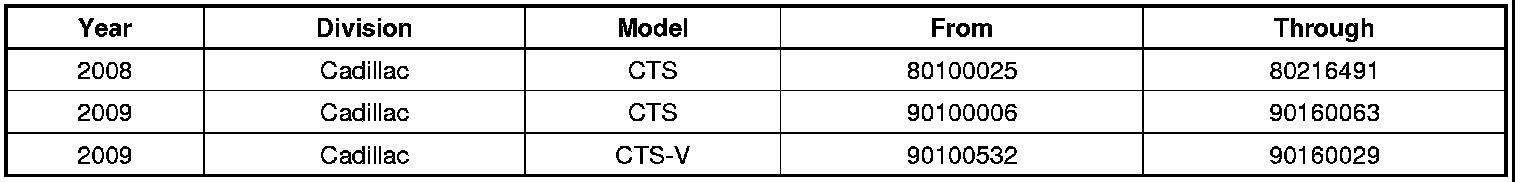 Involved are 2008 and 2009 model year Cadillac CTS vehicles and 2009 model year Cadillac CTS-V vehicles built within these VIN breakpoints: