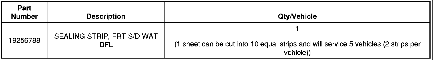 * An initial supply of mastic material required to perform the modification was provided to dealers at no-charge; do not submit for this mastic material in your warranty claim. If additional mastic material was required and was ordered from GMSPO, submit the actual sum total of the current GMSPO Dealer net price for the mastic material needed to perform the required repairs, not to exceed $1.54 USD, $1.62 CAD, plus applicable Mark-Up in Net Item.