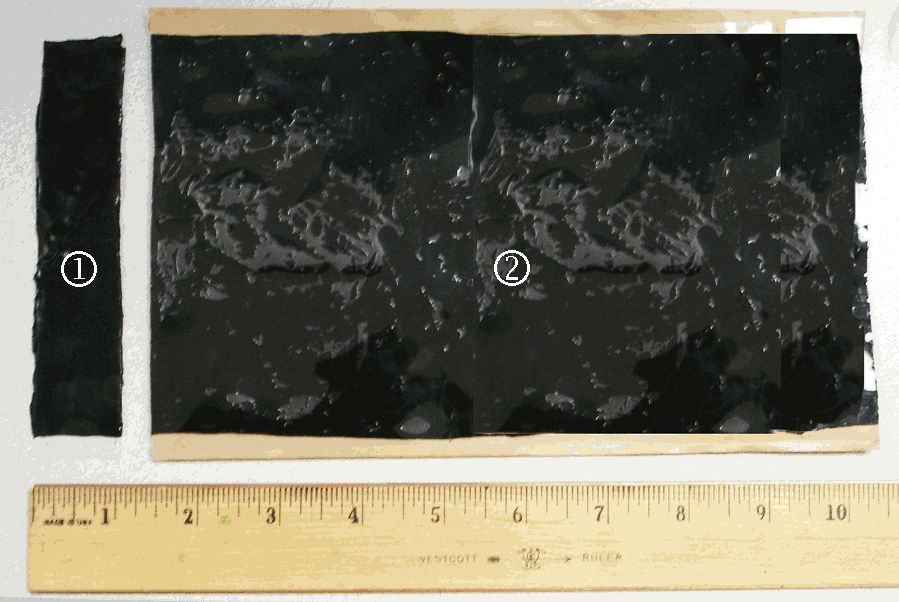 4. Cut a 25.4 mm (1 in) x 127 mm (5 in) strip of mastic material (1) from the 254 mm (10 in) x 127 mm (5 in) piece mastic material (2).