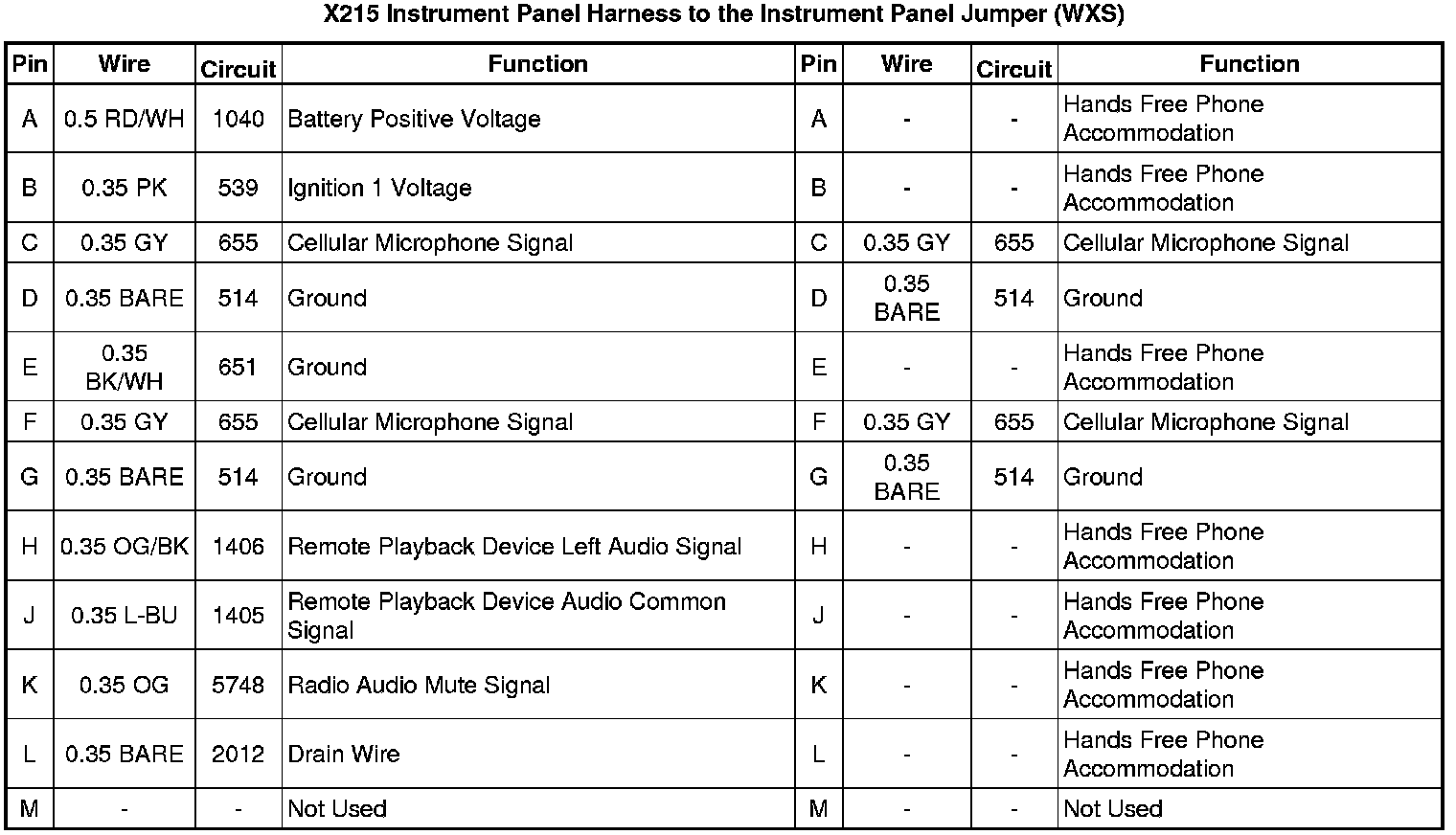 X215 Instrument Panel Harness to the Instrument Panel Jumper (WXS)
