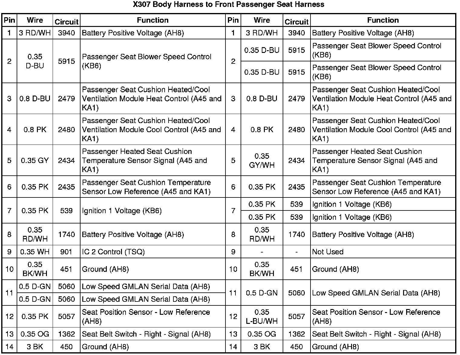 X307 Body Harness to Front Passenger Seat Harness