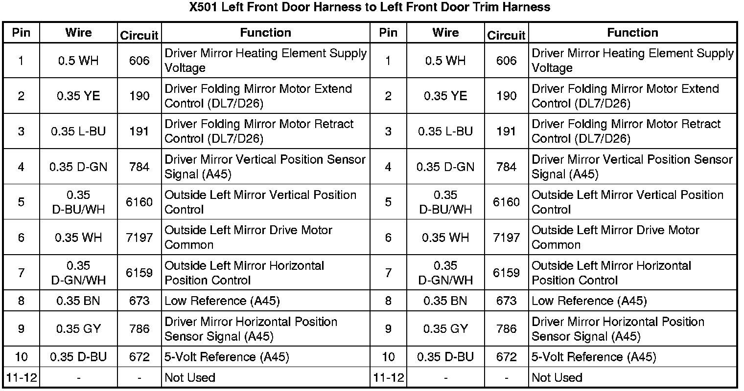 X501 Left Front Door Harness to Left Front Door Trim Harness