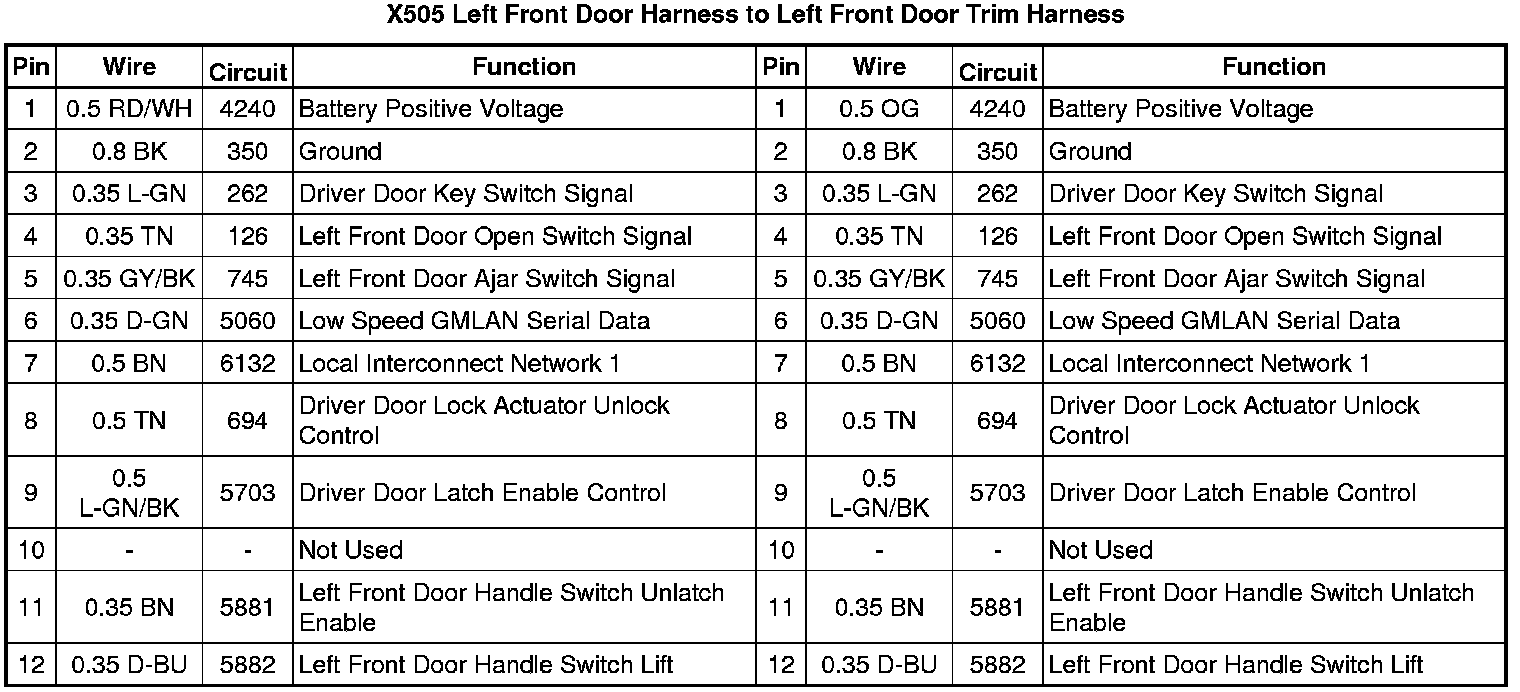 X505 Left Front Door Harness to Left Front Door Trim Harness