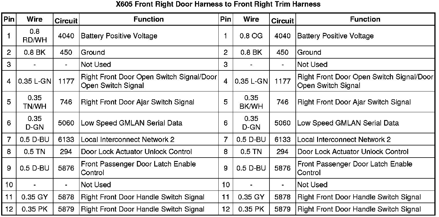 X605 Front Right Door Harness to Front Right Trim Harness