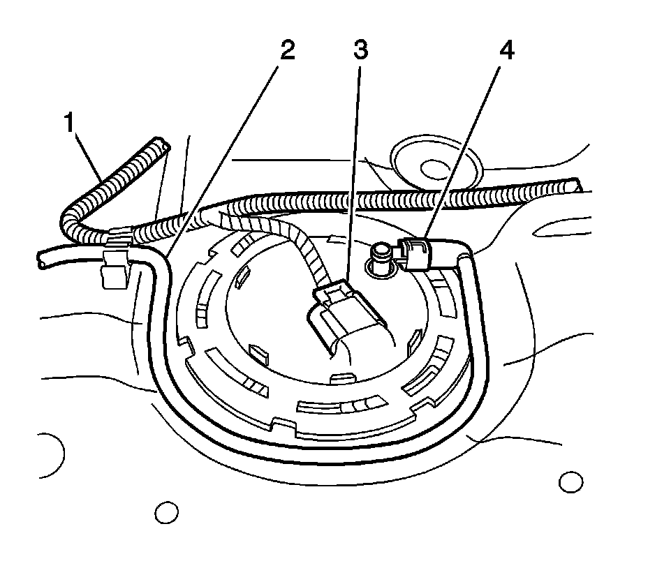 2. Disconnect the fuel feed hose quick connect fitting (4) from the primary fuel tank module. Refer to Plastic Collar Quick Connect Fitting Service (Plastic Collar Quick Connect Fitting Service).