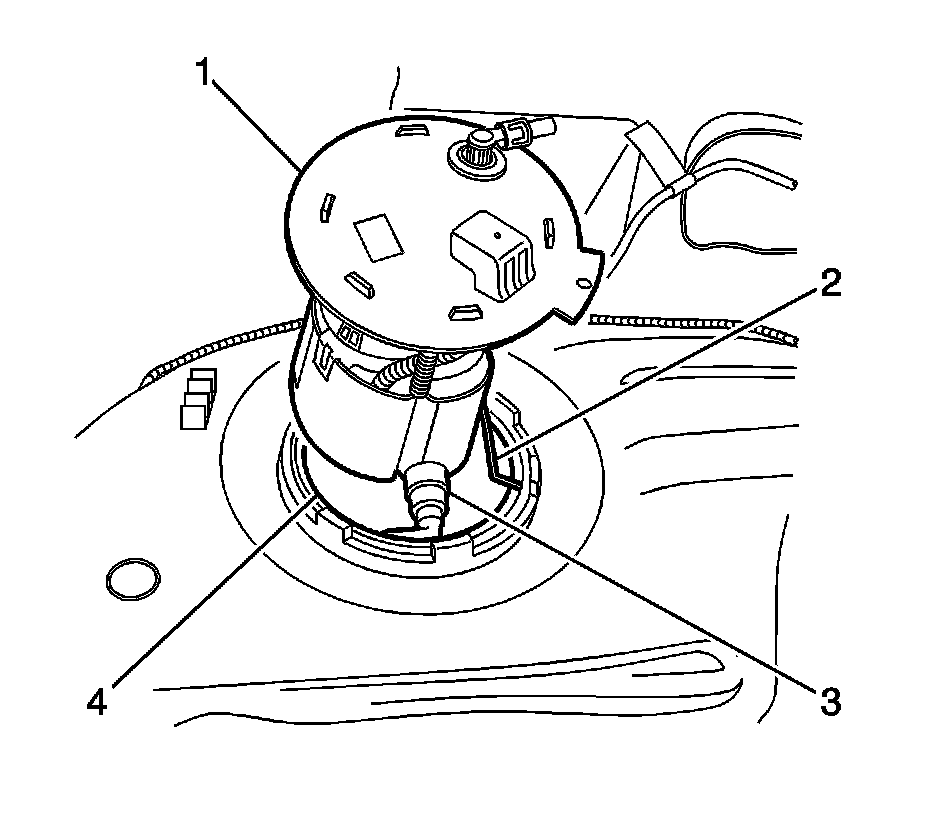 1. Remove the fuel tank in order to gain access to the primary fuel tank module (1). Refer to Fuel Tank Replacement (Service and Repair).