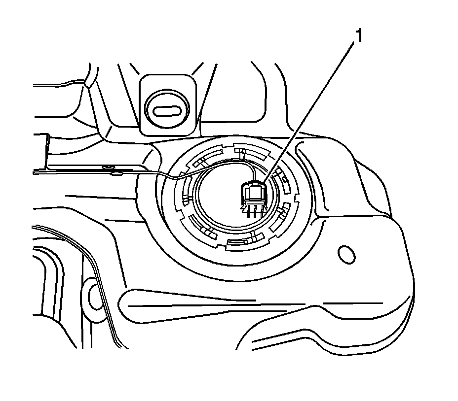 2. Release the interlock and disconnect the electrical connector (1) from the secondary fuel tank module. Position the connector and wire harness aside.